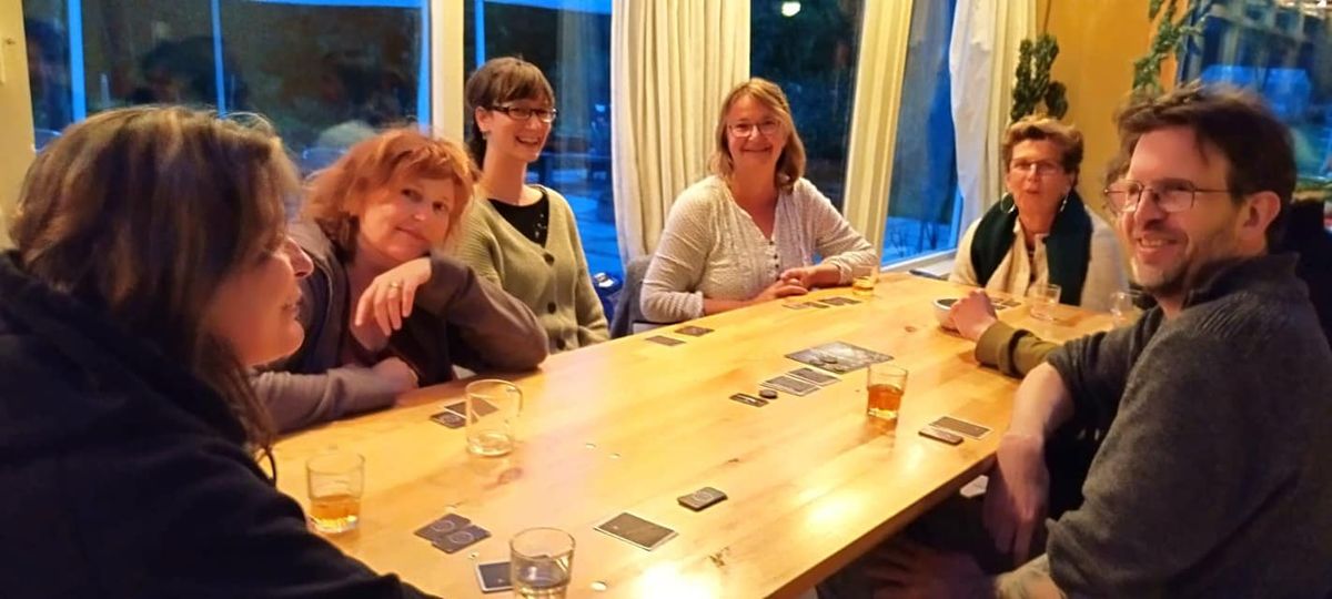 Aan tafel realiseerden we ons op eens dat dit alweer de dertigste keer is dat de Schrijfzevendaagse plaatsvond. De eerste keer was het nog een driedaagse in Frankrijk, daarna werd het een vijfdaagse en tegenwoordig blijven we gewoon zeven dagen en zitten we in de fantastische Hof van Axen in het Drentse Witteveen.